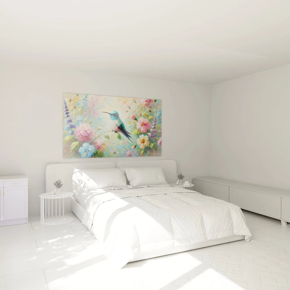 Plongez dans un univers où la nature se révèle dans toute sa splendeur grâce au Tableau Sérénité Florale - Édition Animaux. Cette création exceptionnelle vous transporte dans un jardin enchanté, où chaque détail floral et animalier compose une harmonie visuelle pleine de poésie et d’énergie. Imaginez un instant suspendu, où un colibri virevolte délicatement parmi des fleurs aux teintes vibrantes, symbolisant l’équilibre parfait entre légèreté et force.
