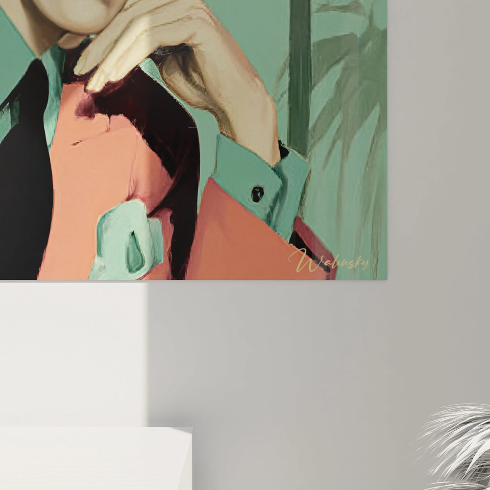 Le Séducteur aux Palmiers a été inspiré par les voyages de créateurs audacieux qui ont su allier nature et style. Ce tableau porte en lui l’esprit des soirées estivales, des cocktails au bord de la piscine, et de la brise marine caressant les visages enjoués. En l'accrochant chez vous, vous invitez cette sensation de joie et de liberté dans votre quotidien.