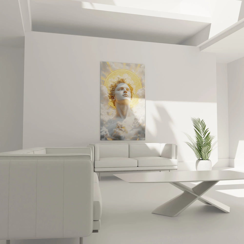 Cette œuvre est une passerelle entre les siècles : l’allure néo-classique se marie avec une touche contemporaine, offrant un mélange d’antique et de modernité qui fait toute sa singularité. La texture marmoréenne du visage d’Apollon évoque la solidité intemporelle des sculptures grecques, tandis que l’aura lumineuse qui l'entoure vous plonge dans un rêve mystique, où le divin et l’humain cohabitent en parfaite harmonie.
