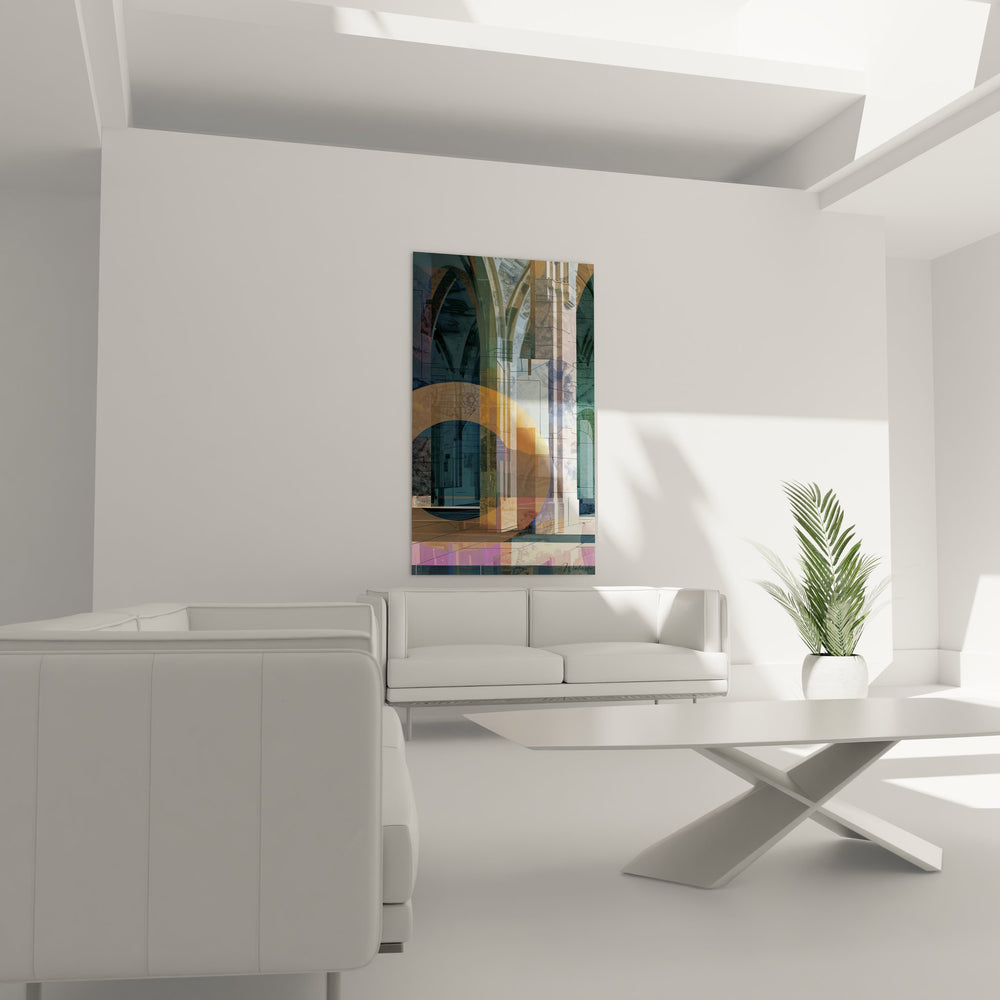 Ce tableau mural architecture présente une composition abstraite sophistiquée mêlant éléments architecturaux et géométrie contemporaine. L'œuvre révèle une architecture moderne déconstruite à travers des formes géométriques superposées, créant un dialogue visuel entre structures urbaines et abstraction artistique. Les éléments architecturaux abstraits s'entremêlent dans une harmonie de transparences et d'opacités, évoquant la complexité de l'urbanisme contemporain. Cette décoration murale architecture capture l'essence de la modernité architecturale par ses lignes épurées et ses volumes géométriques. L'artiste a magistralement orchestré une composition géométrique urbaine où chaque élément dialogue avec les autres, créant une profondeur visuelle remarquable. Les formes circulaires et rectangulaires se superposent dans un art contemporain architectural qui transcende la simple représentation pour devenir pure expression esthétique. Cette œuvre d'art urbain moderne transforme l'espace architectural en terrain d'exploration artistique, offrant une vision renouvelée de notre environnement bâti contemporain.