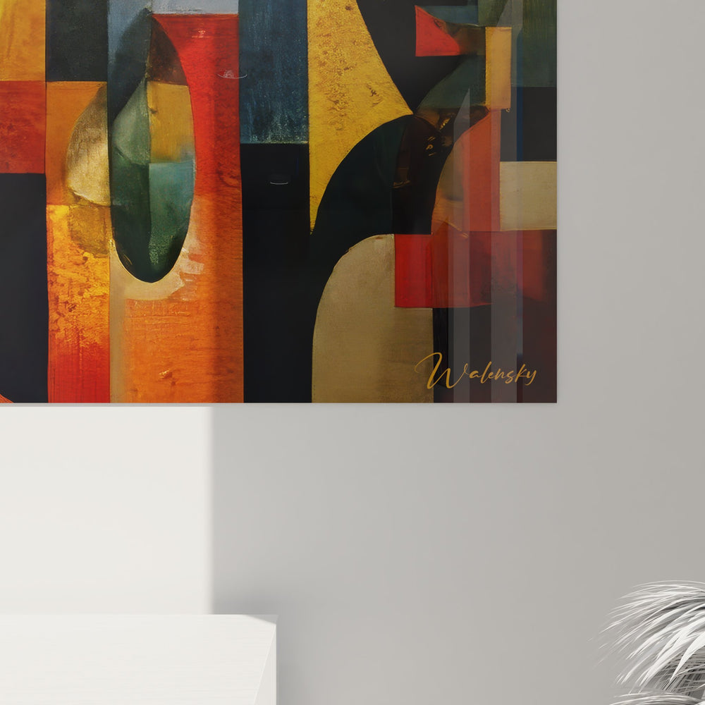 Cette œuvre s'inscrit dans la lignée des grands maîtres de l'abstraction géométrique tout en puisant ses références dans l'art traditionnel africain. Elle évoque les compositions de Wassily Kandinsky ou Paul Klee, mais avec une sensibilité proprement africaine. L'approche rappelle également les créations contemporaines d'artistes comme El Anatsui ou Julie Mehretu, qui réinterprètent les codes visuels africains dans un langage artistique moderne. Ce style art mural abstrait africain trouve ses racines dans les motifs décoratifs des textiles bogolan, des masques traditionnels et des architectures soudano-sahéliennes.