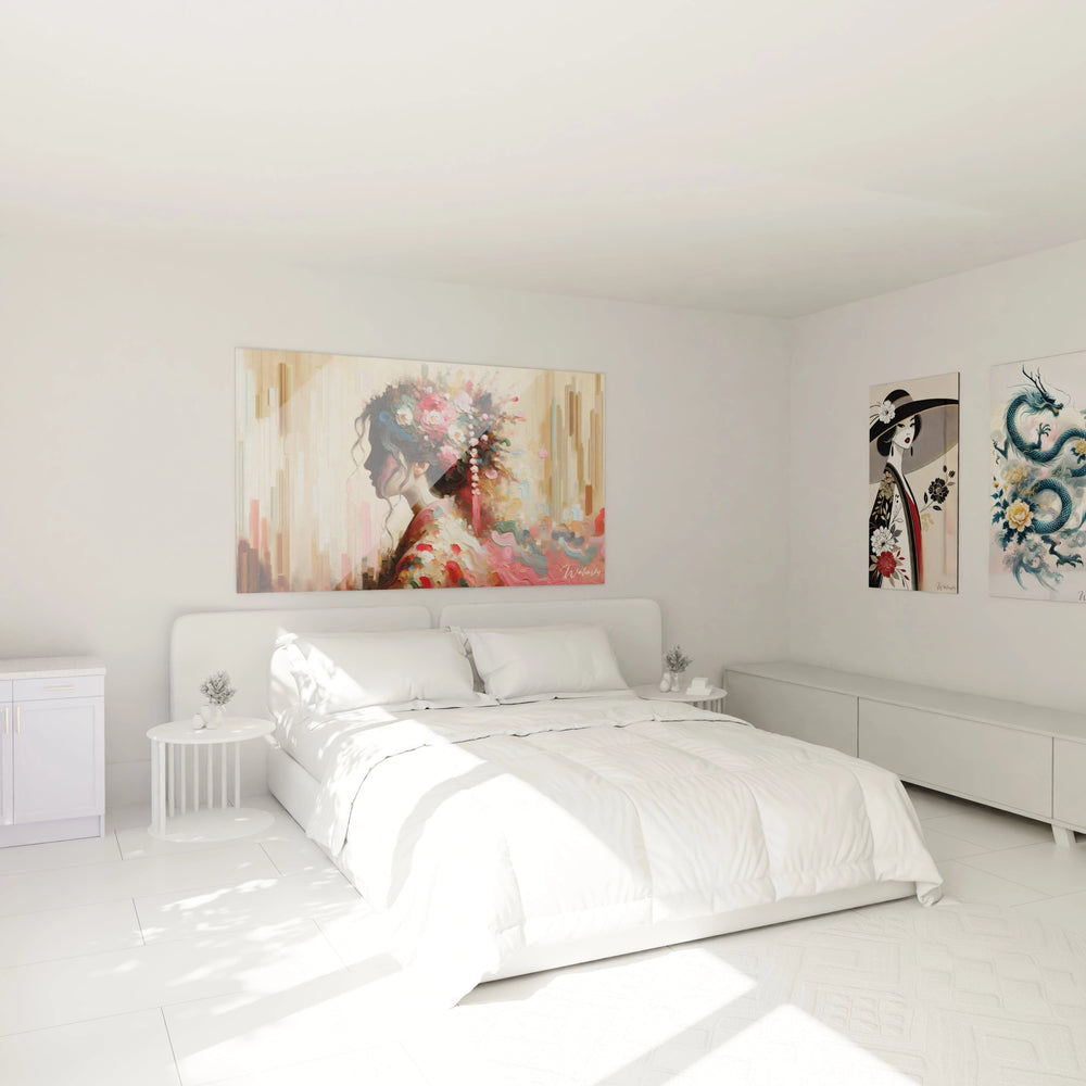 Découvrez l’essence même de l’harmonie et de la délicatesse orientale avec ce Tableau Profil Florissant - Édition Asia. Chaque trait, chaque couleur a été minutieusement pensé pour éveiller en vous une sensation de calme profond et d’élégance raffinée, idéale pour sublimer vos espaces de vie.