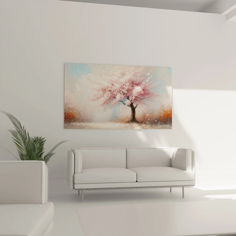 Inspiré par l’art impressionniste, ce tableau privilégie la lumière, la texture et l’émotion plutôt que les détails précis, accentuant l’aspect éthéré du cerisier en fleurs. Chaque touche délicate et chaque nuance renforcent la sensation d’un moment fugace, précieux, capturé pour durer éternellement sur vos murs. Cette interprétation moderne, mêlant abstraction et douceur, est une célébration de la beauté éphémère que seule la nature sait offrir.
