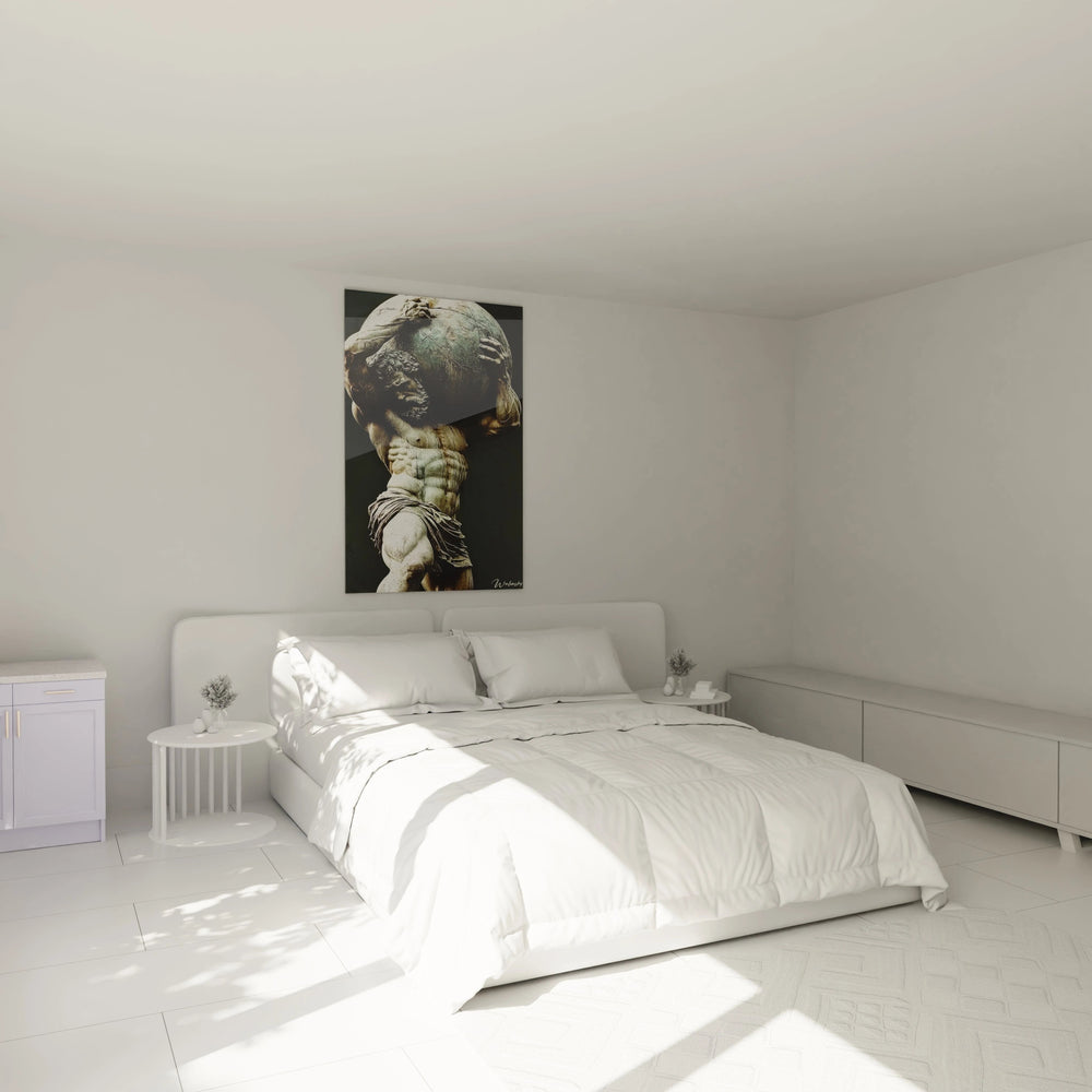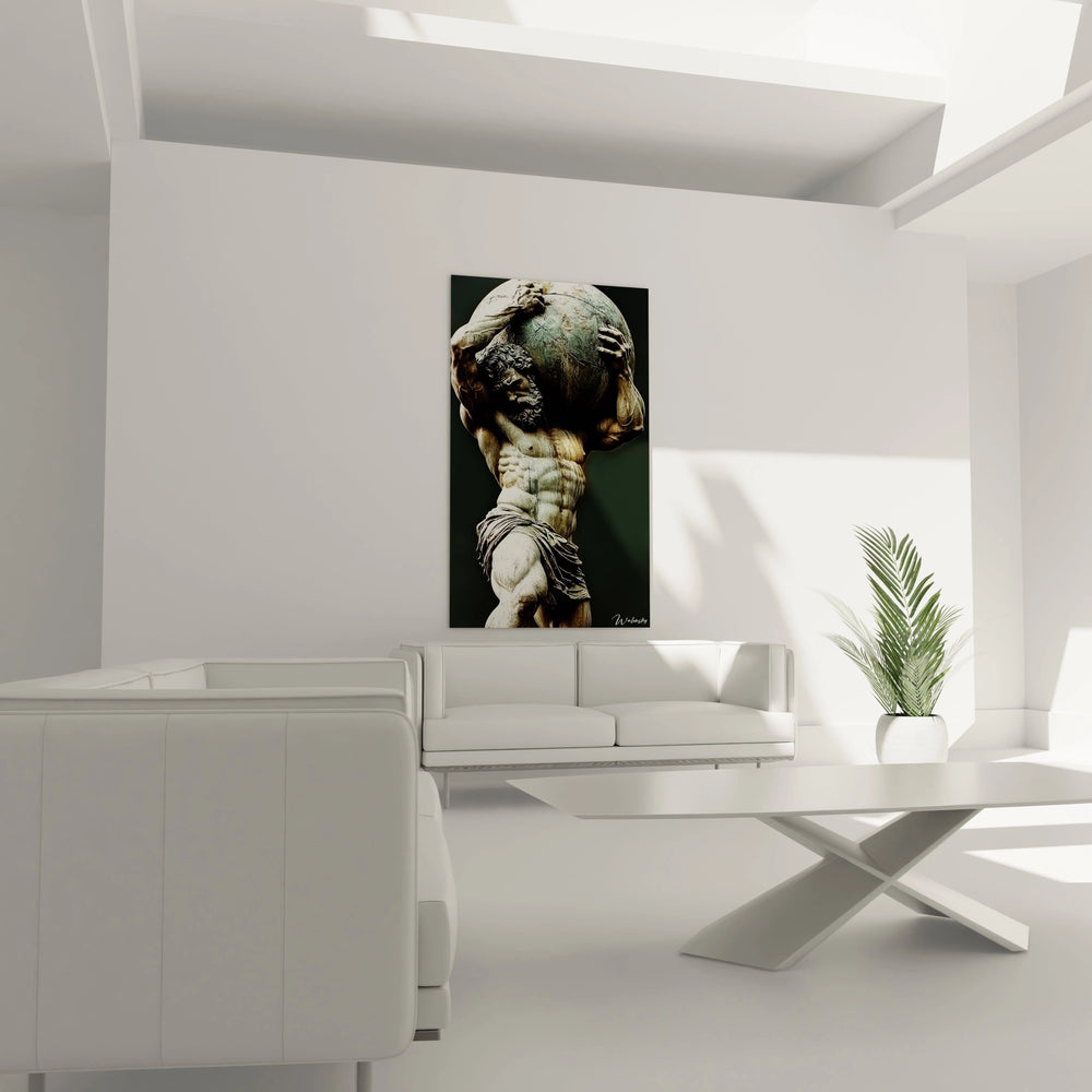 Au-delà de son esthétique remarquable, cette œuvre agit comme un miroir de votre propre force intérieure. Elle vous accompagne dans vos défis quotidiens, vous rappelant que, comme Atlas, vous portez avec bravoure votre destin tout en gardant une dignité héroïque. Son ambiance solennelle et sacrée crée une atmosphère où l’introspection devient un luxe à savourer.