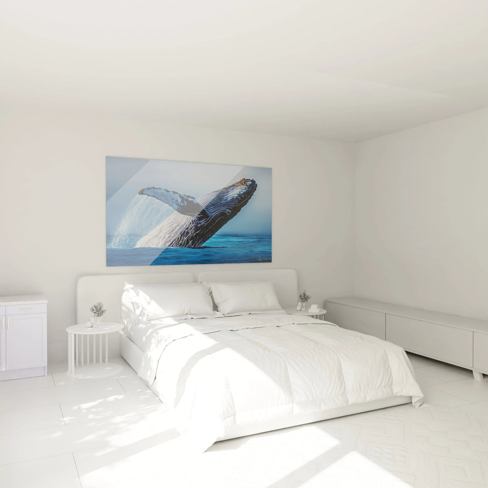Chaque détail de ce tableau évoque la noblesse et la sérénité d’un univers aquatique où la baleine règne en reine incontestée. Sa présence imposante apporte une dimension unique à votre espace, transformant un mur ordinaire en une scène captivante empreinte de profondeur et d’émotion.
