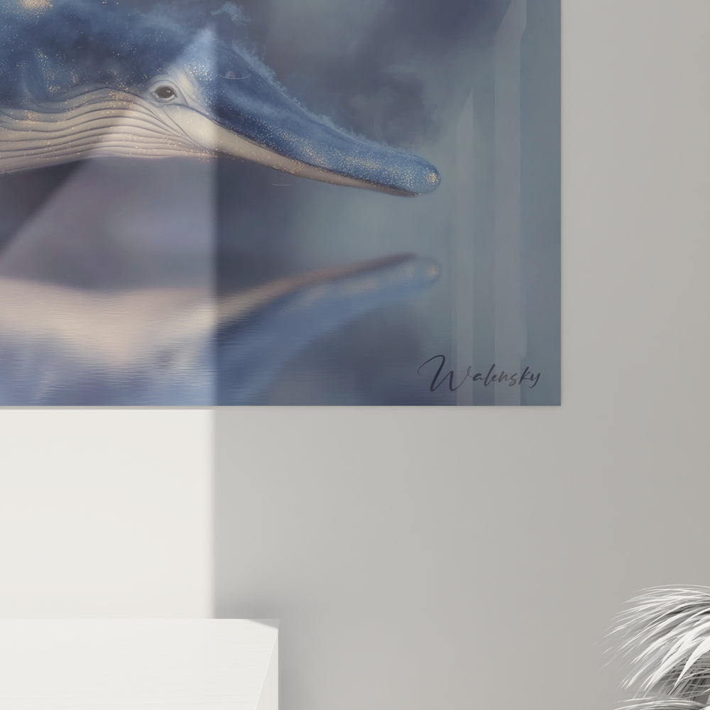 Ce tableau mural baleine de l'édition Basilosaurus capture la majesté d'une baleine dans un océan mystique aux tonalités bleutées envoûtantes. L'œuvre présente une baleine géante évoluant dans des eaux profondes, créant une atmosphère de sérénité et de mystère. Les nuances de bleu se mélangent harmonieusement avec des reflets dorés, évoquant la lumière solaire filtrant à travers les profondeurs marines. Cette décoration murale marine transforme instantanément l'espace en sanctuaire aquatique. Le tableau océan moderne joue sur les contrastes entre les zones sombres des abysses et les éclats lumineux qui dansent sur la surface de l'eau. La composition artistique met en valeur la silhouette élégante du cétacé, symbole de sagesse et de force tranquille. Ce tableau baleine design s'intègre parfaitement dans les intérieurs contemporains, apportant une dimension poétique et apaisante. L'art mural océanique de cette pièce unique invite à la contemplation et à l'évasion vers les profondeurs marines. Les détails subtils de l'anatomie de la baleine révèlent le savoir-faire artistique de l'édition Basilosaurus, créant une œuvre à la fois réaliste et onirique.