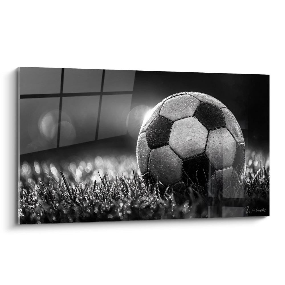 Tableau Ballon de Football sur Terrain - Passion Noir et Blanc - Edition football