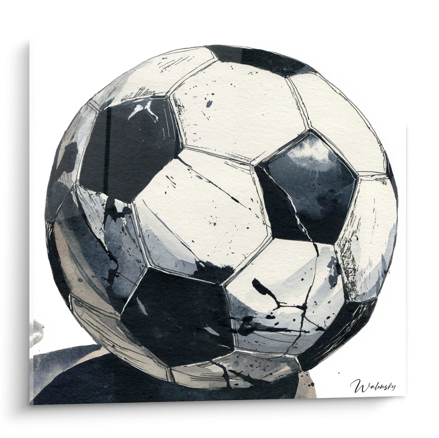 Tags: tableau football, art sportif, décoration vintage, ballon football, aquarelle monochrome