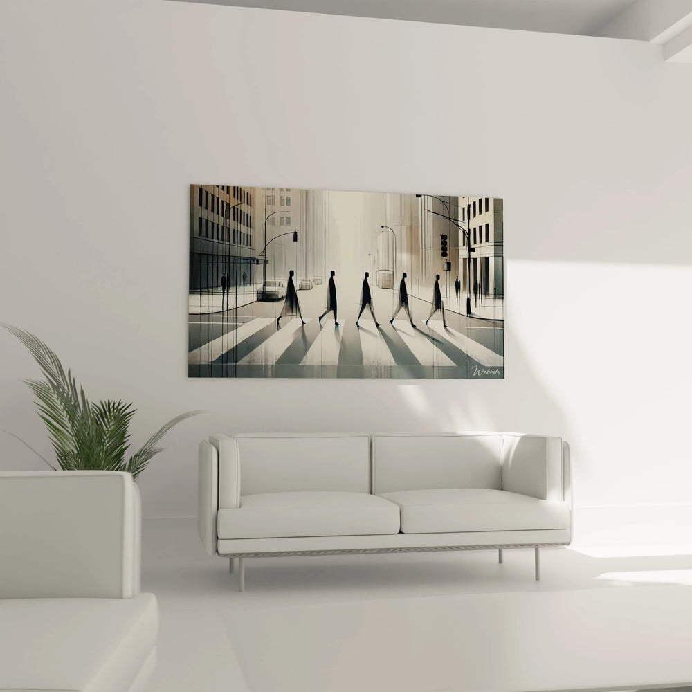 Cette œuvre est bien plus qu’une simple représentation : elle incarne l’âme d’une révolution culturelle, le souffle d’une époque où les Beatles ont traversé la rue pour marquer à jamais l’histoire de la musique. Saisies dans un style minimaliste et poétique, les silhouettes s’étirent avec grâce, évoquant une douce suspension dans le temps qui invite à la rêverie.