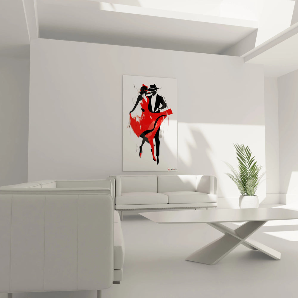 Plus qu’un simple objet décoratif, ce tableau est une célébration de l’instant intense où deux âmes s’unissent en un pas commun. Il incarne la beauté fugace et la force du mouvement, offrant à votre intérieur une élégance mystérieuse et captivante. Cette œuvre unique révèle la puissance d’une expression artistique où le rouge, symbole de passion, dialogue avec la profondeur du noir pour créer un tableau qui ne laisse jamais indifférent.
