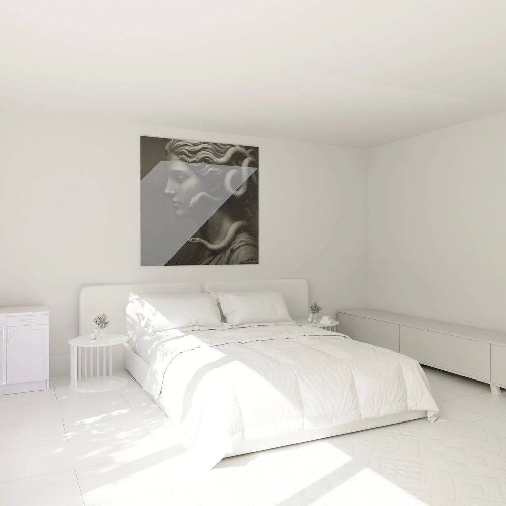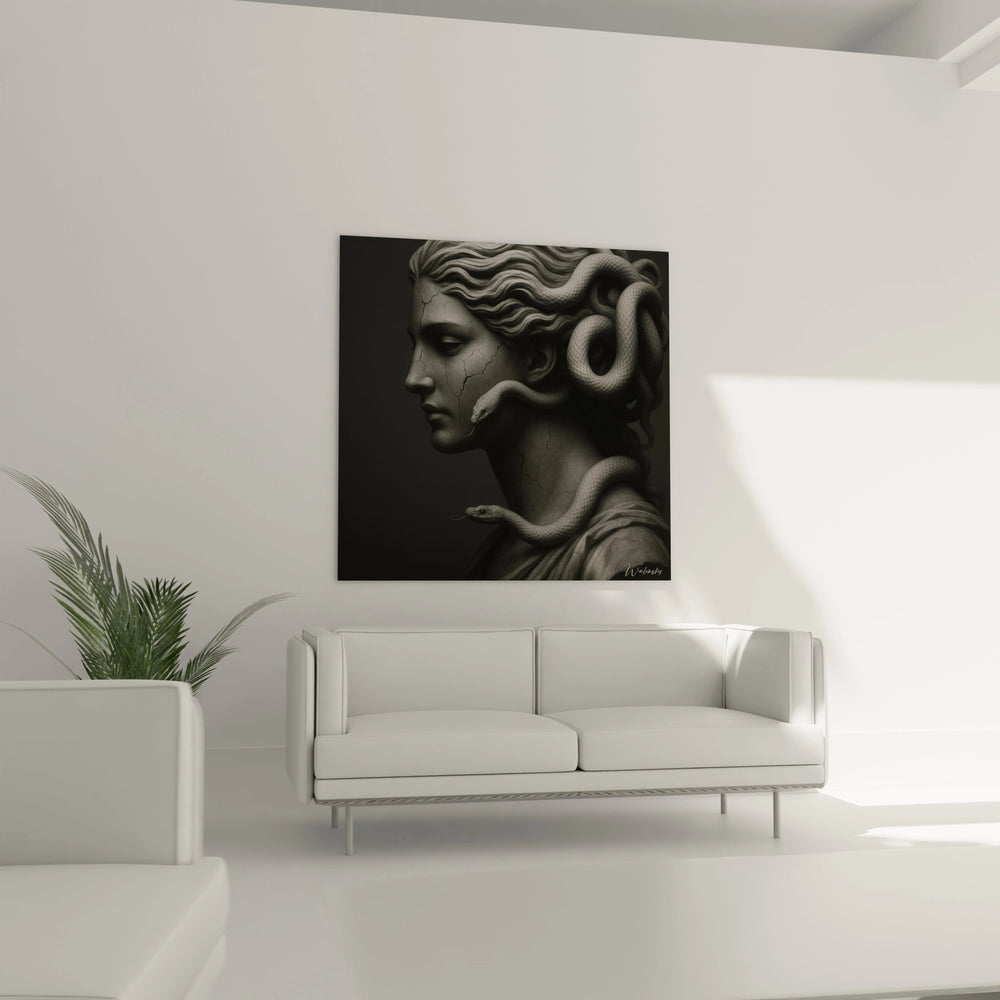 Découvrez une œuvre d'art unique qui transforme votre intérieur en un écrin de mystère et d'élégance : le Tableau Beauté Stoïque - Édition Statue. Inspiré par la puissance légendaire de Méduse, ce tableau vous transporte dans un univers où beauté et intensité cohabitent de façon saisissante.