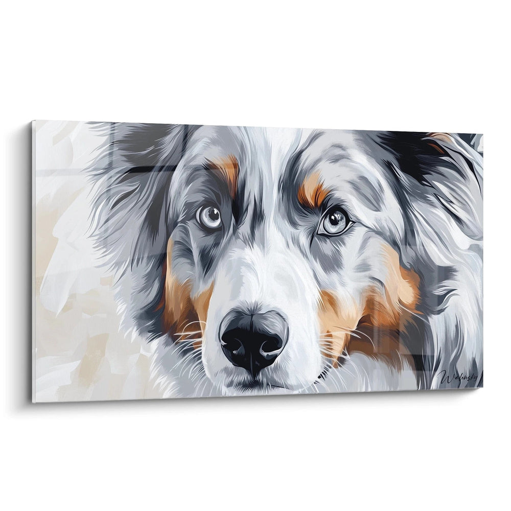 Les yeux bleus frappants de ce Berger Australien semblent suivre chaque mouvement, créant une connexion intime avec vous. Cette œuvre ne saurait être simplement observée : elle invite à ressentir la loyauté, la sagesse et l’intelligence qui caractérisent cette race hors du commun. Son expression tendre, empreinte de vigilance, transforme votre pièce en un sanctuaire de sérénité et de confiance.