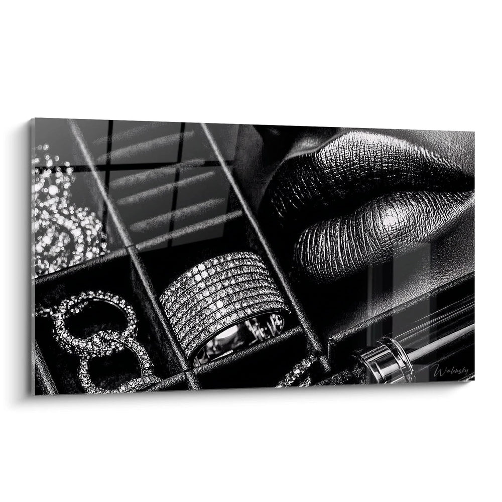 bijoux, luxe, accessoires de mode, photographie noir et blanc, tableau décoratif