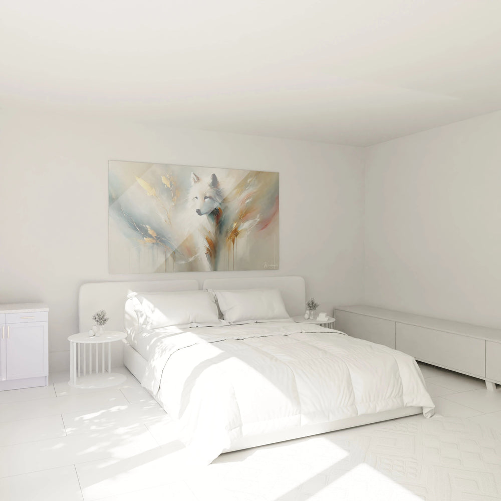 Ce tableau est bien plus qu’une simple décoration murale : c’est une présence apaisante qui insuffle à votre intérieur une atmosphère de calme profond. L’artiste s’est inspiré de la noblesse et du mystère qui caractérisent le loup, mettant en valeur son regard empreint de sagesse et sa silhouette qui semble émerger d’un rêve. Vous ressentirez la caresse légère des coups de pinceau, presque palpables, qui apportent une dimension tactile et chaleureuse à l’œuvre.