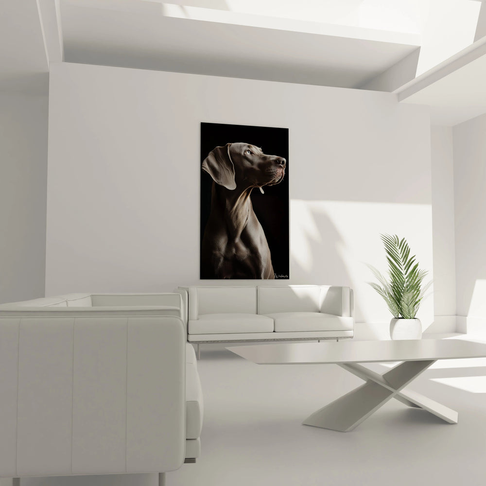Imaginez un instant la grâce souveraine d’un Braque de Weimar capturée dans un tableau d’exception. Ce chef-d'œuvre ne se contente pas de décorer vos murs, il insuffle une atmosphère d’élégance raffinée et de noblesse intemporelle à votre espace de vie.