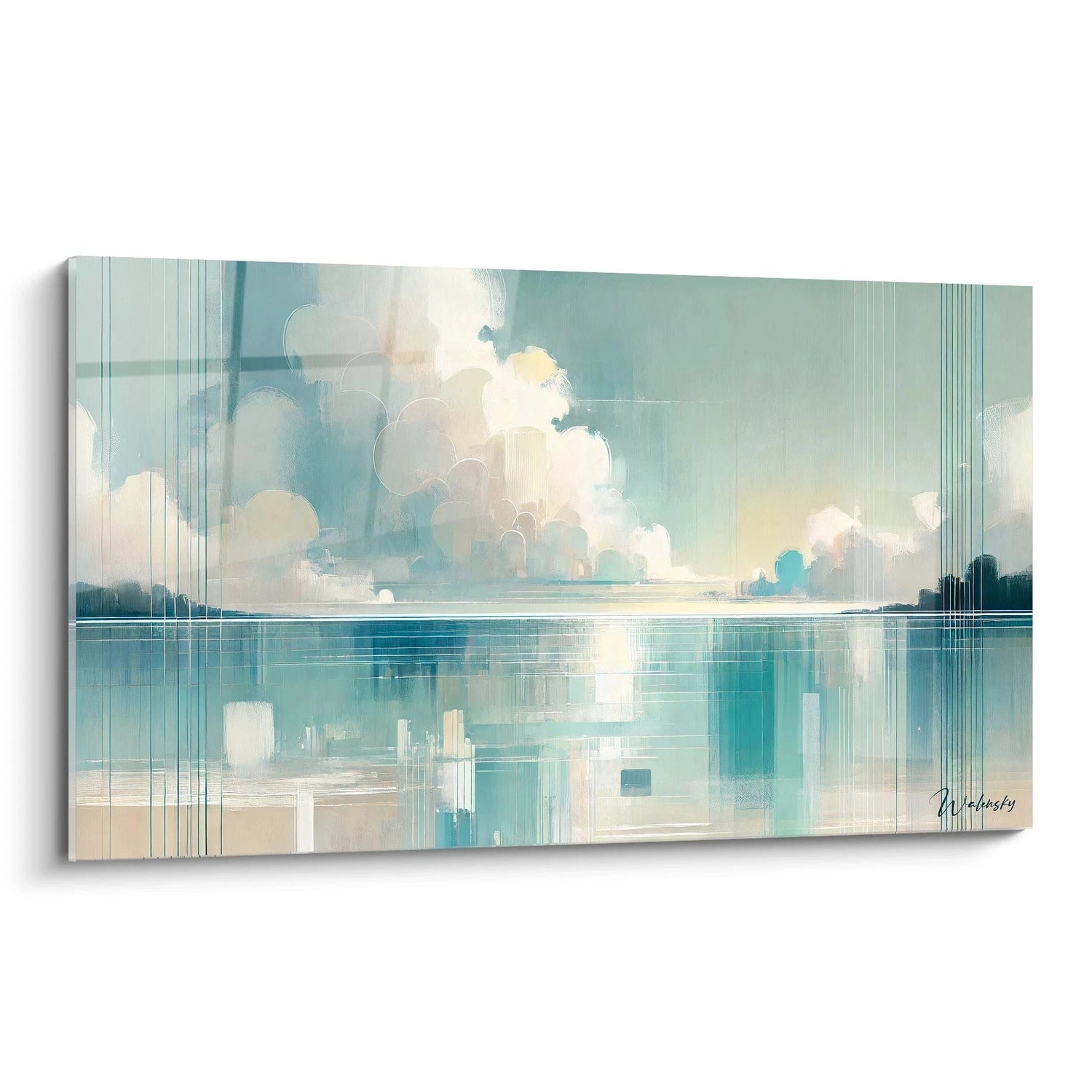 Les nuances élégantes de bleu apaisant, relevées de blancs lumineux et de touches délicates de beige, créent une sensation immersive qui enveloppe votre regard dans un halo de sérénité. Grâce à un jeu harmonieux de transparences et de lignes minimalistes, ce tableau évoque la danse fluide des vagues et la délicatesse des nuages, instaurant une atmosphère de calme absolu.