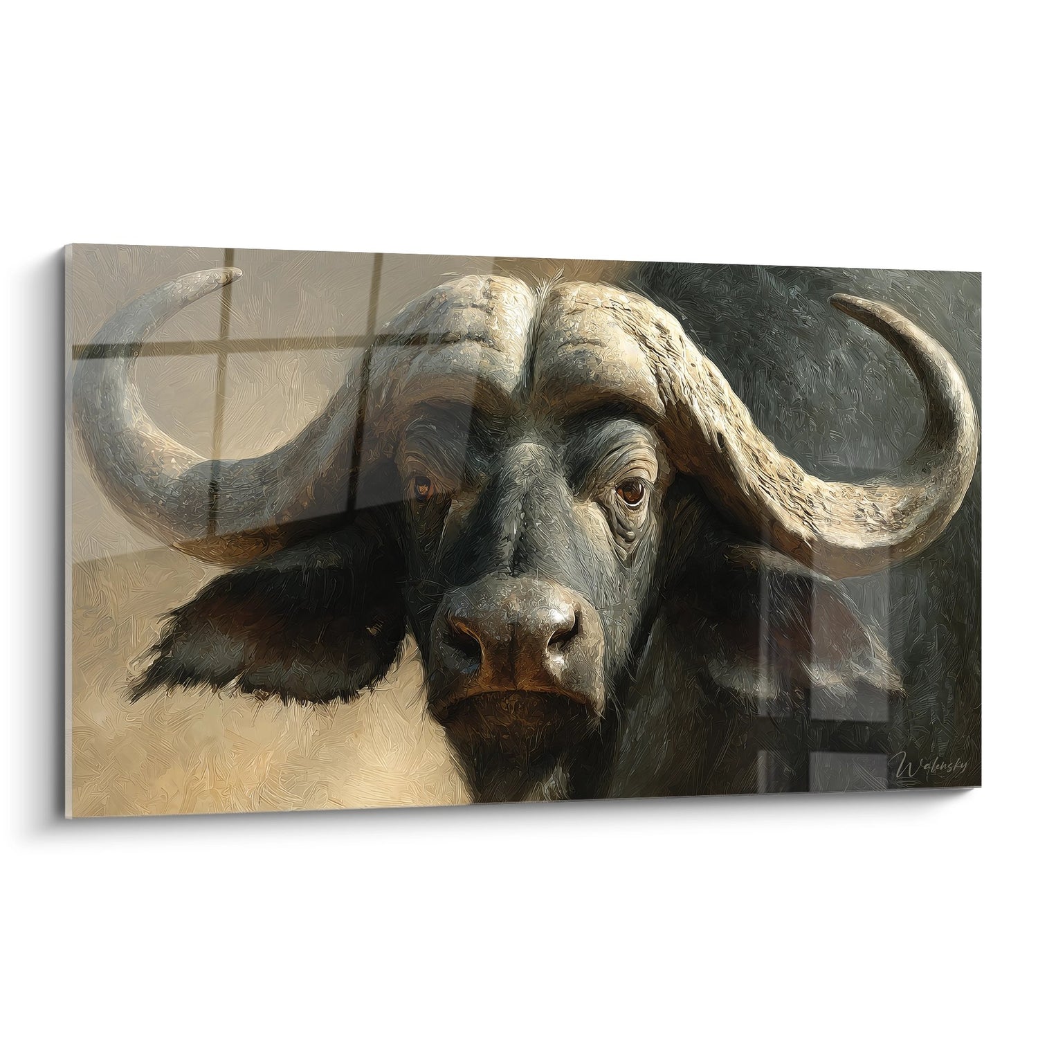 Tags : tableau buffle, art animalier, décoration africaine, faune sauvage, cornes imposantes