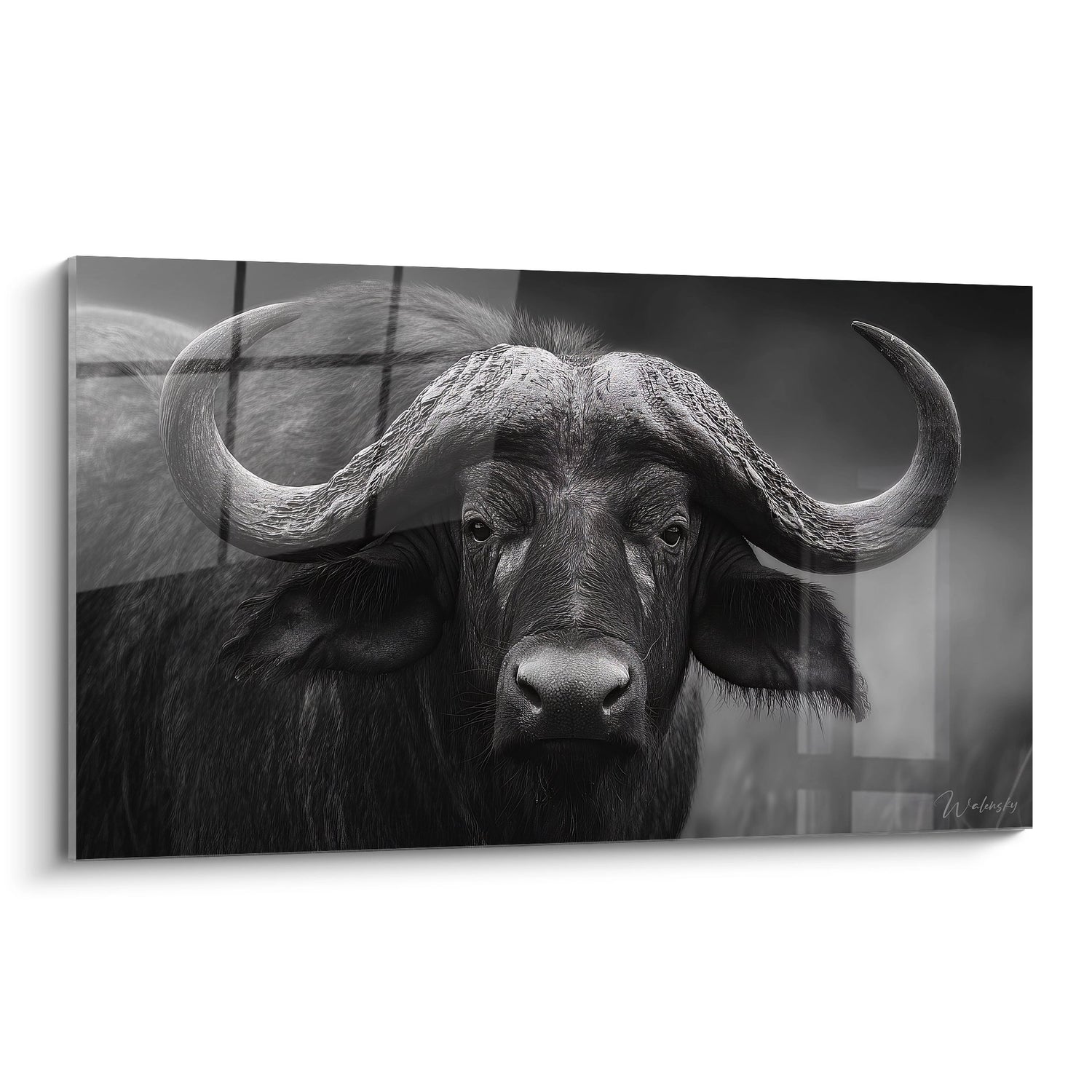 Tags : tableau buffle, art animalier, décoration murale, noir et blanc, photographie wildlife