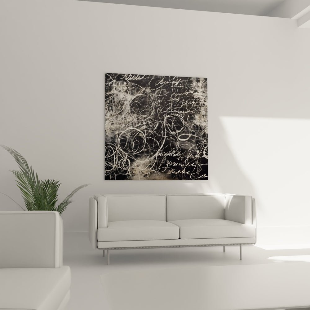Cette œuvre d'art contemporaine présente une composition fascinante de calligraphie abstraite où les gestes spontanés de l'artiste créent un dialogue visuel captivant. Le tableau mural calligraphie révèle un entrelacement complexe de courbes organiques et de tracés gestuels qui évoquent l'art de l'écriture automatique. Les motifs spiralés se développent naturellement à travers la surface, créant un rythme visuel hypnotique qui attire le regard vers différents points focaux. Cette œuvre d'art gestuelle témoigne d'une liberté créative totale, où chaque trait semble né d'un mouvement instinctif et maîtrisé. Les formes organiques entrelacées rappellent tantôt l'écriture cursive, tantôt des volutes de fumée figées dans le temps. Le dessin contemporain noir et blanc exploite magistralement les contrastes pour créer une profondeur visuelle remarquable. Cette composition artistique moderne s'inscrit parfaitement dans les tendances actuelles de l'art mural, offrant une sophistication qui transforme instantanément l'atmosphère d'un espace. L'artiste a su créer une œuvre où la spontanéité rencontre la technique, produisant un résultat à la fois accessible et profondément artistique.