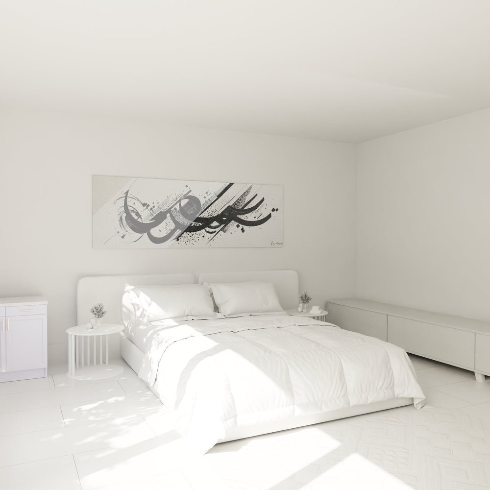 Tags : calligraphie abstraite, tableau noir blanc, art contemporain, décoration moderne, paysage abstrait
