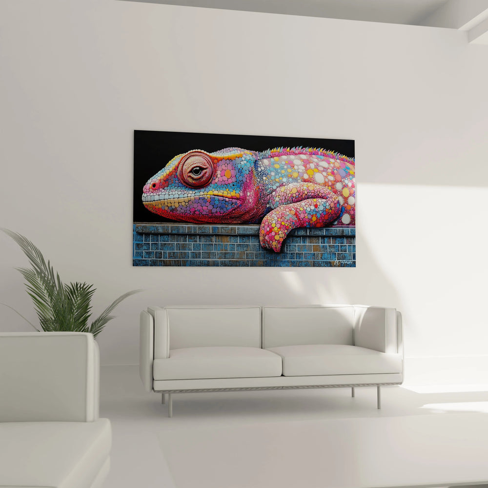 Cette art mural caméléon arc-en-ciel démontre une harmonie parfaite entre saturation et équilibre, évitant la cacophonie chromatique grâce à une distribution réfléchie des intensités.