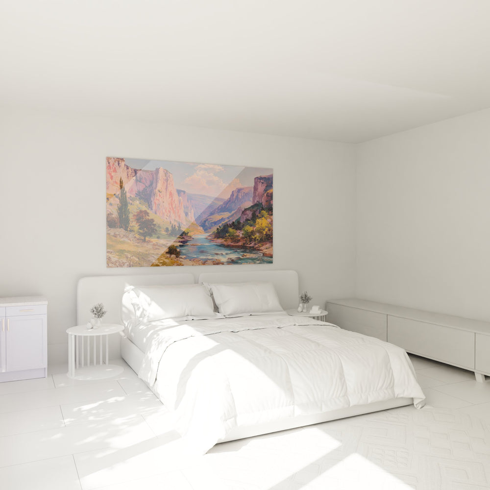 Tags : canyon falaises roses, paysage gorges naturelles, tableau rivière montagne, art mural canyon, décoration paysage sauvage