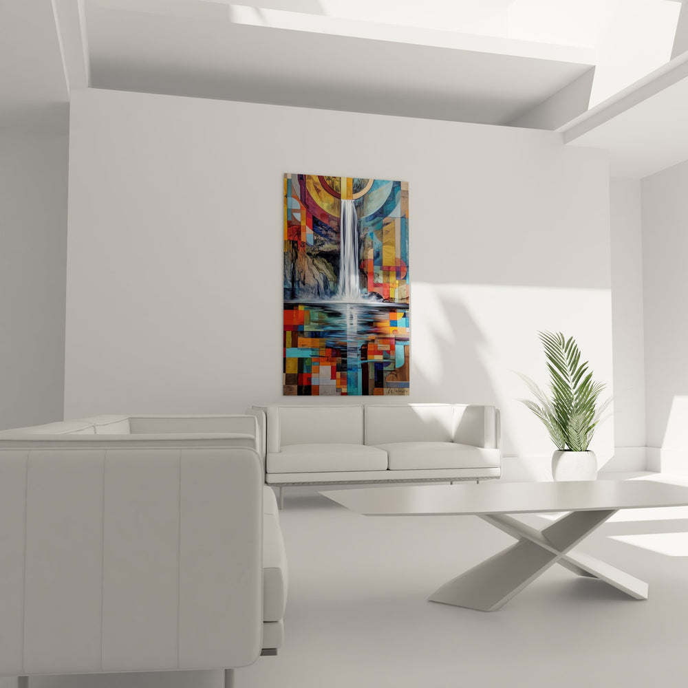 Tags : cascade abstraite, art géométrique, tableau moderne, décoration murale, chute d'eau artistique