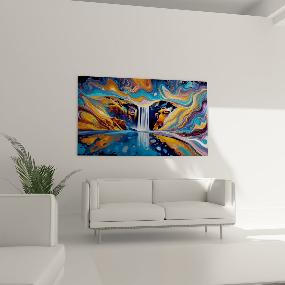 Tags : tableau cascade moderne, art mural abstrait, décoration cascade, peinture fluide, œuvre contemporaine