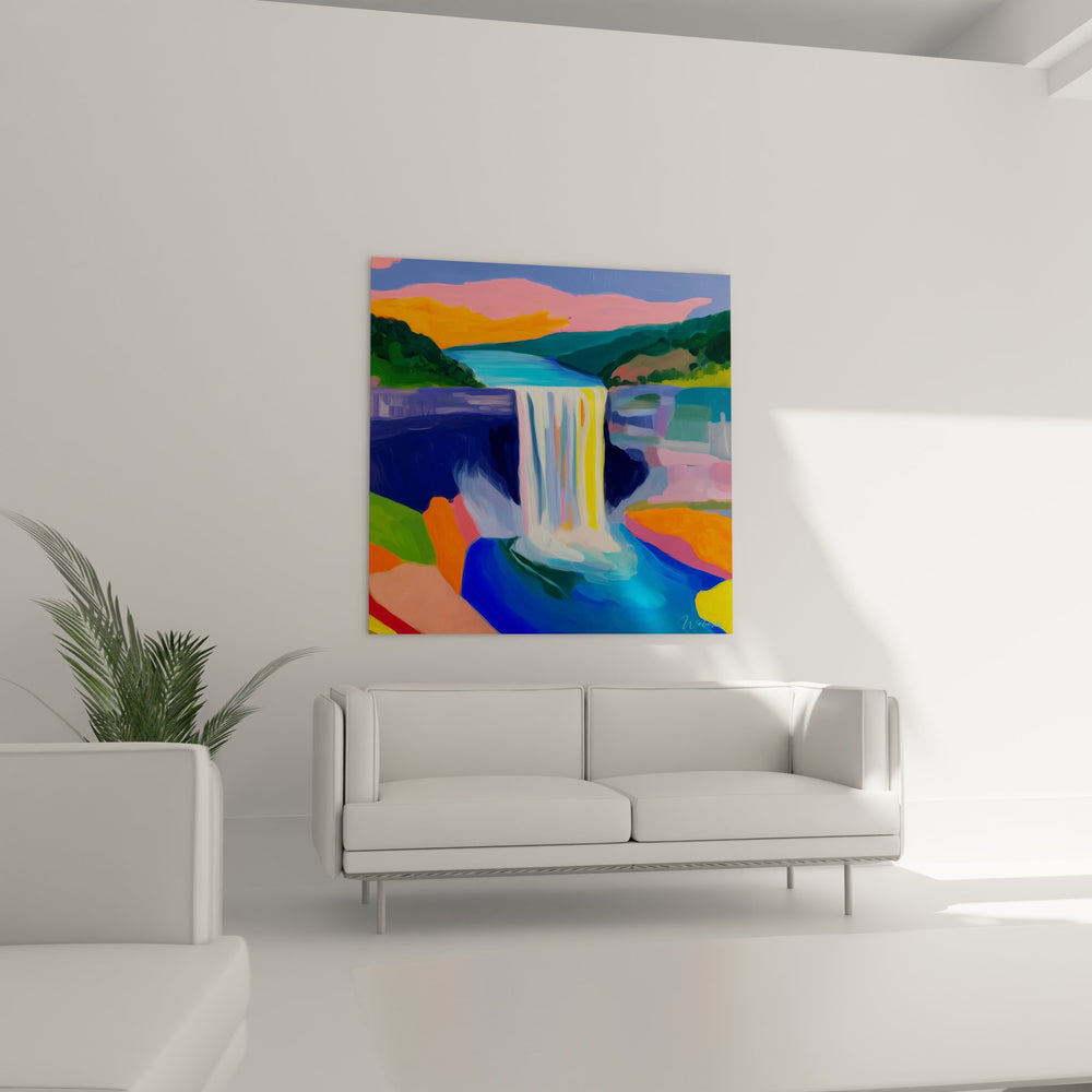 Tags : cascade abstraite, peinture moderne, art contemporain, décoration colorée, paysage stylisé
