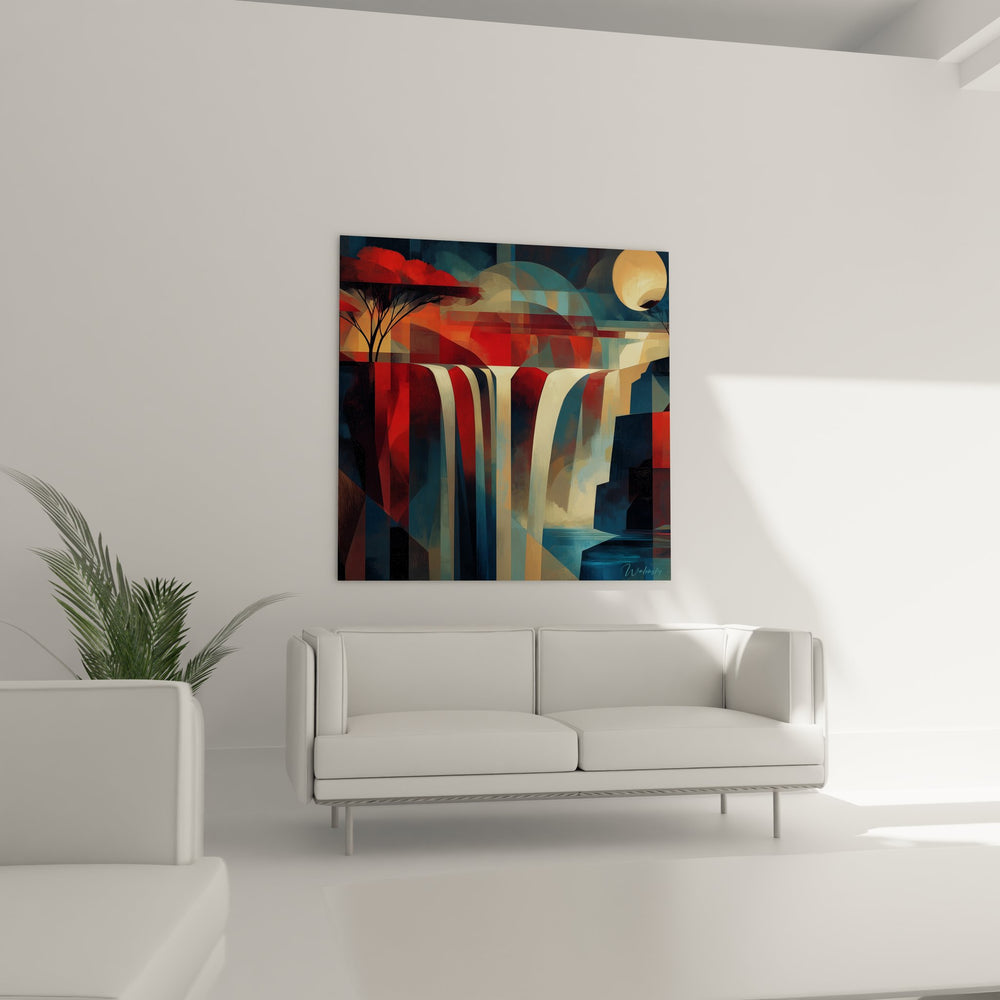 Tags : cascade cubiste, art géométrique, tableau moderne, décoration contemporaine, œuvre abstraite