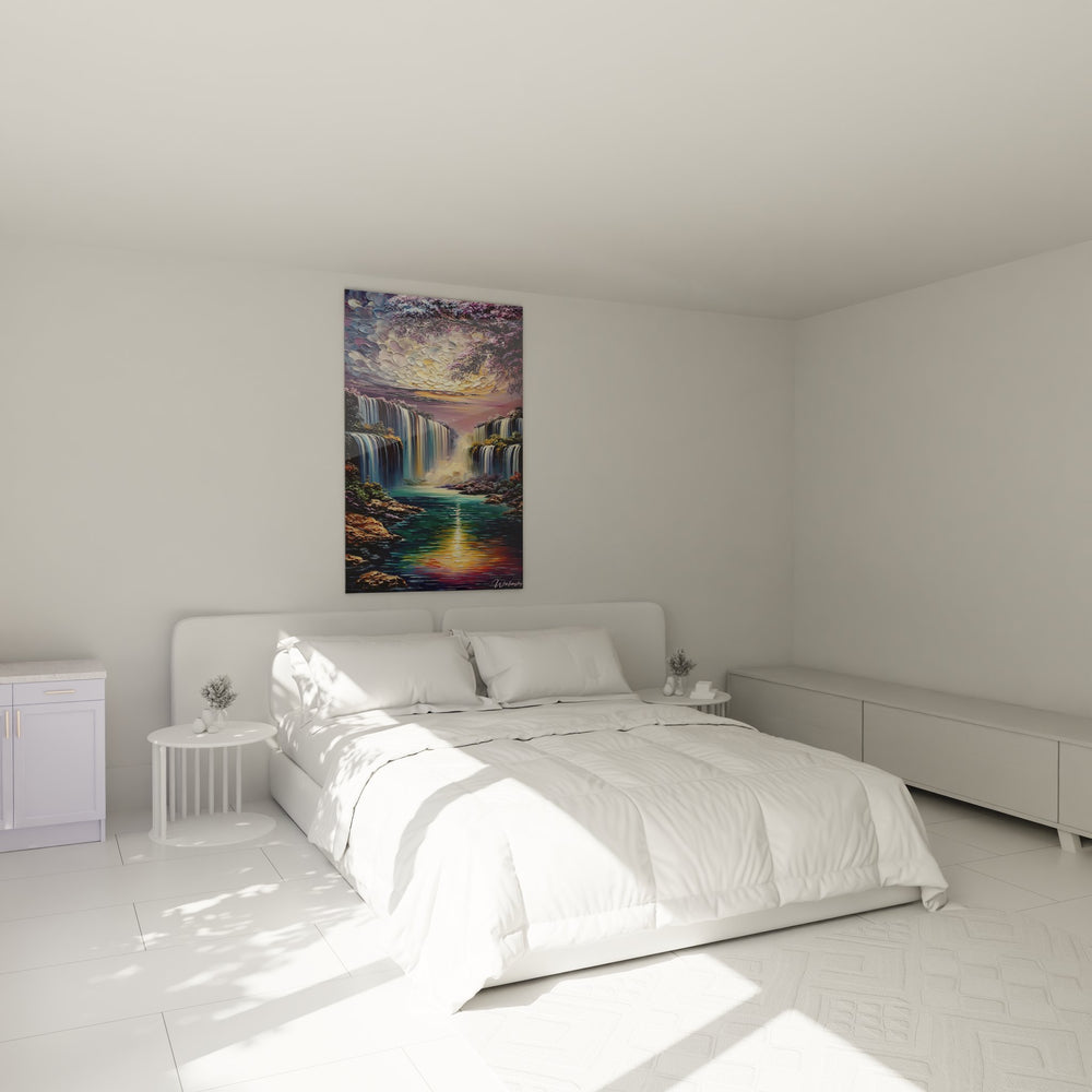 Le Tableau Cascade Majestueuse n'est pas seulement une œuvre d'art, c'est une invitation à la contemplation. Que vous soyez dans votre salon, un bureau ou un espace personnel, cette pièce sublime apporte une touche d'exclusivité à votre décoration. Les artistes derrière cette réalisation s'inspirent des paysages naturels, cherchant à capturer l'harmonie entre l'eau et la lumière, et à vous permettre d'emmener chez vous un souffle de nature.