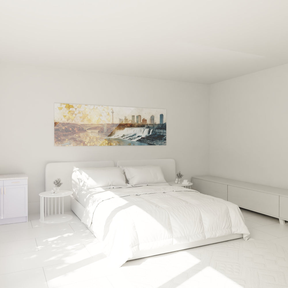 Tags : tableau cascade, art mural moderne, décoration urbaine, motifs géométriques, Niagara contemporain