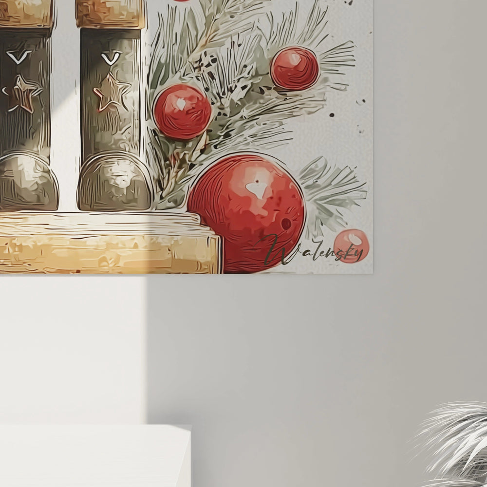 Cette art mural casse-noisette chaleureux utilise des contrastes subtils entre les tons chauds et froids, créant une atmosphère réconfortante typique des célébrations hivernales.