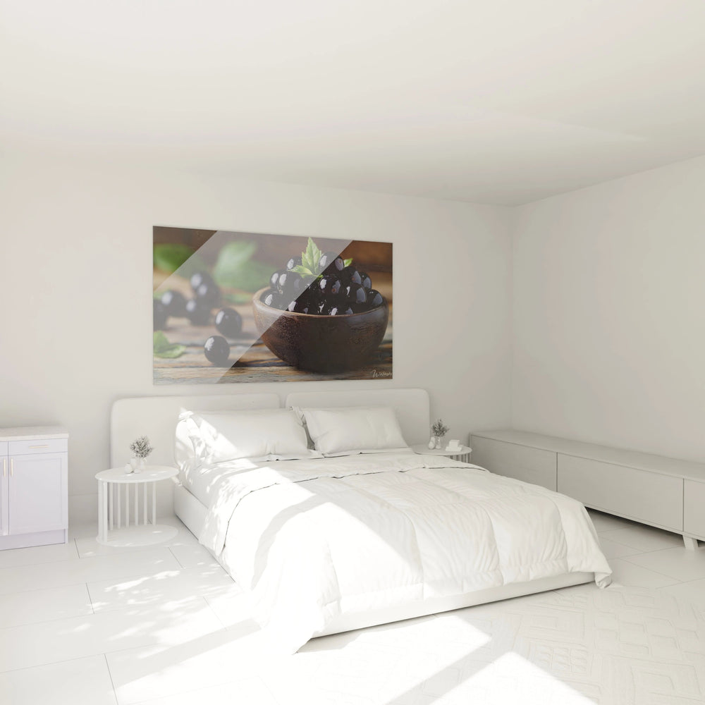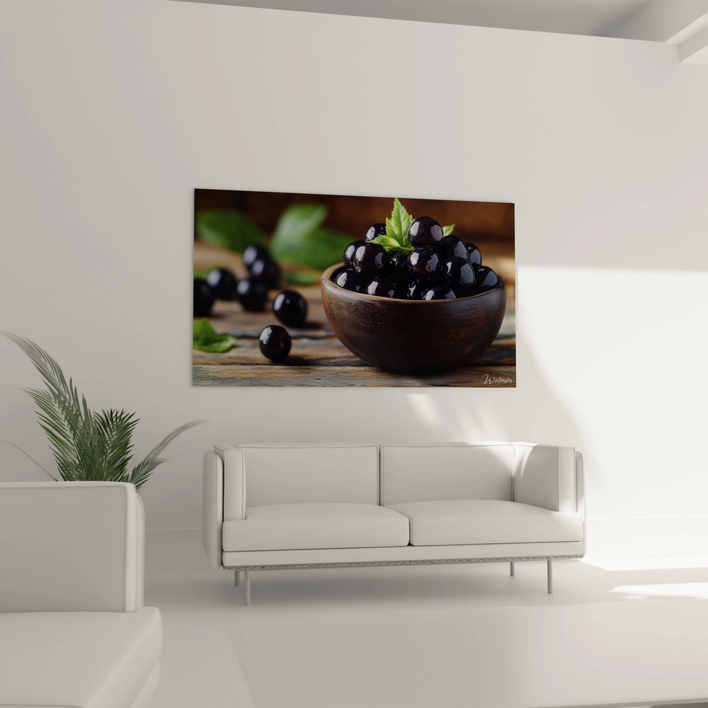Chaque dĂ©tail de ce tableau Ă©voque la richesse tactile et visuelle du cassis fraĂźchement cueilli. Imaginez la douceur satinĂ©e de sa peau qui capte la lumiĂšre, lâĂ©clat juteux de ses baies profondes, et cette atmosphĂšre apaisante qui sâinstalle dans la piĂšce dĂšs que vous posez les yeux dessus. Ce rĂ©alisme contemporain sâappuie sur une palette oĂč le marron chaleureux du bois rencontre le noir intense et le vert Ă©clatant des feuilles, permettant une respirabilitĂ© visuelle Ă©lĂ©gante et parfaitement Ă©quilibrĂ©e.