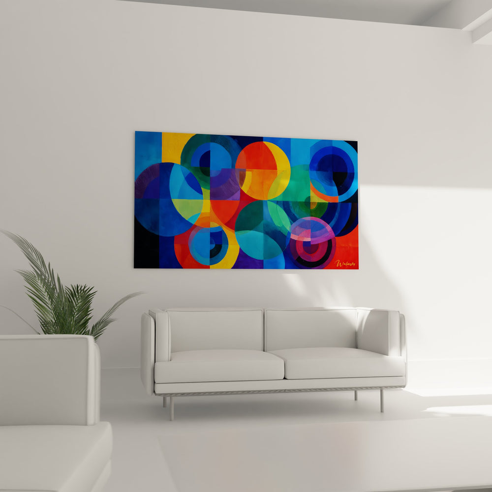 Tags : cercles colorés, géométrique abstrait, tableau moderne, art mural, décoration contemporaine