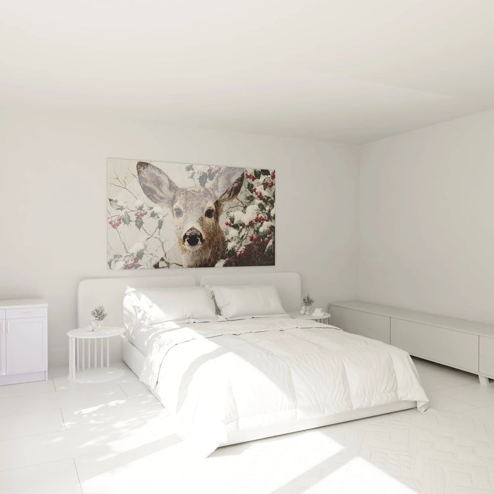 Achetez dès maintenant votre Tableau Cerf Regard sous les Flocons - Édition Noël et laissez-vous envoûter par sa beauté !