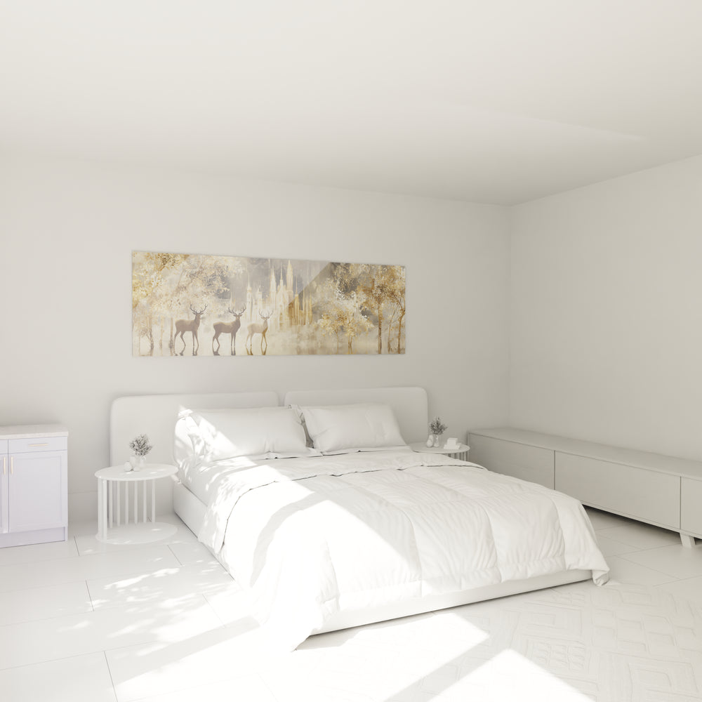 Cette décoration murale cerfs lumineuse développe une harmonie monochrome sophistiquée où chaque nuance dialogue avec les autres. L'impact émotionnel de ces choix chromatiques évoque la sérénité, la noblesse et une spiritualité contemplative qui transforme l'espace où elle s'expose.