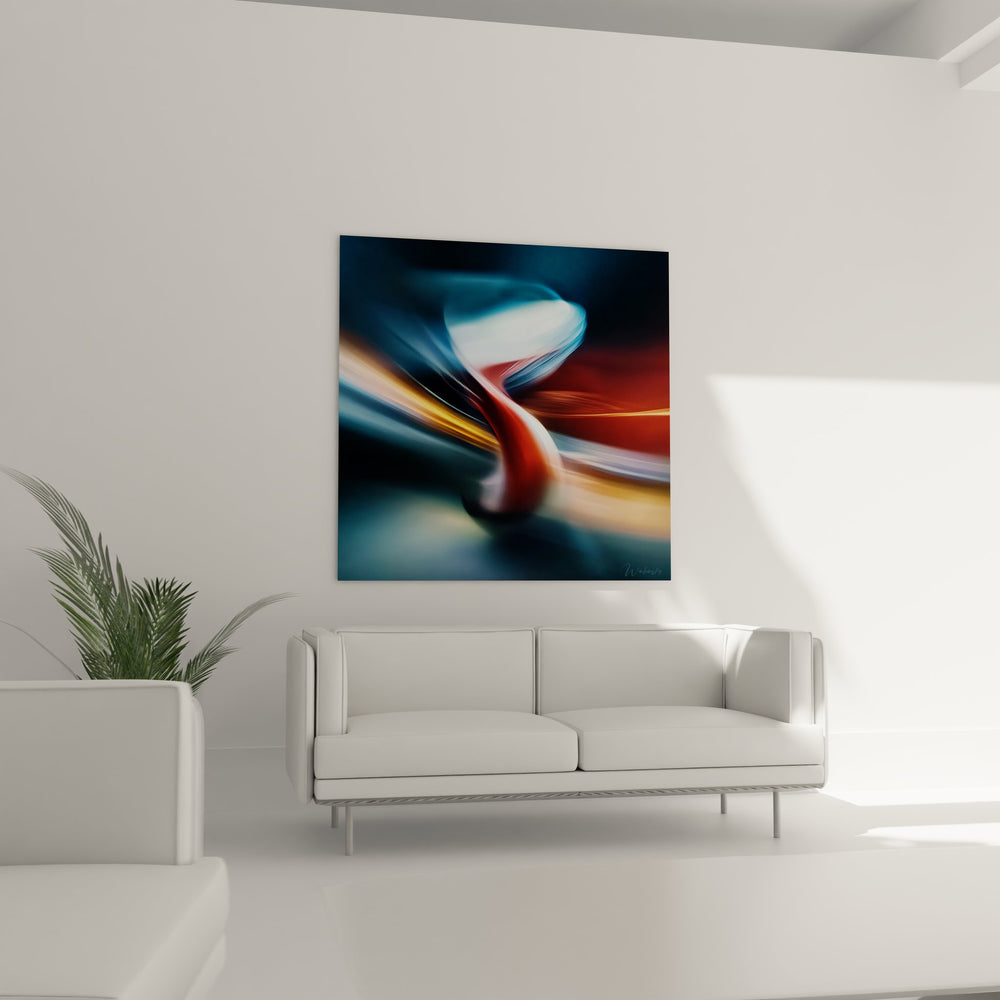 La symbolique de cette œuvre light painting évoque la modernité et le mouvement perpétuel de notre époque. Les couleurs chaudes orange et dorées représentent l'énergie créatrice, tandis que les tons bleus apportent sérénité et profondeur. Cette palette chromatique moderne crée un équilibre visuel parfait, symbolisant l'harmonie entre tradition et innovation dans le design contemporain.