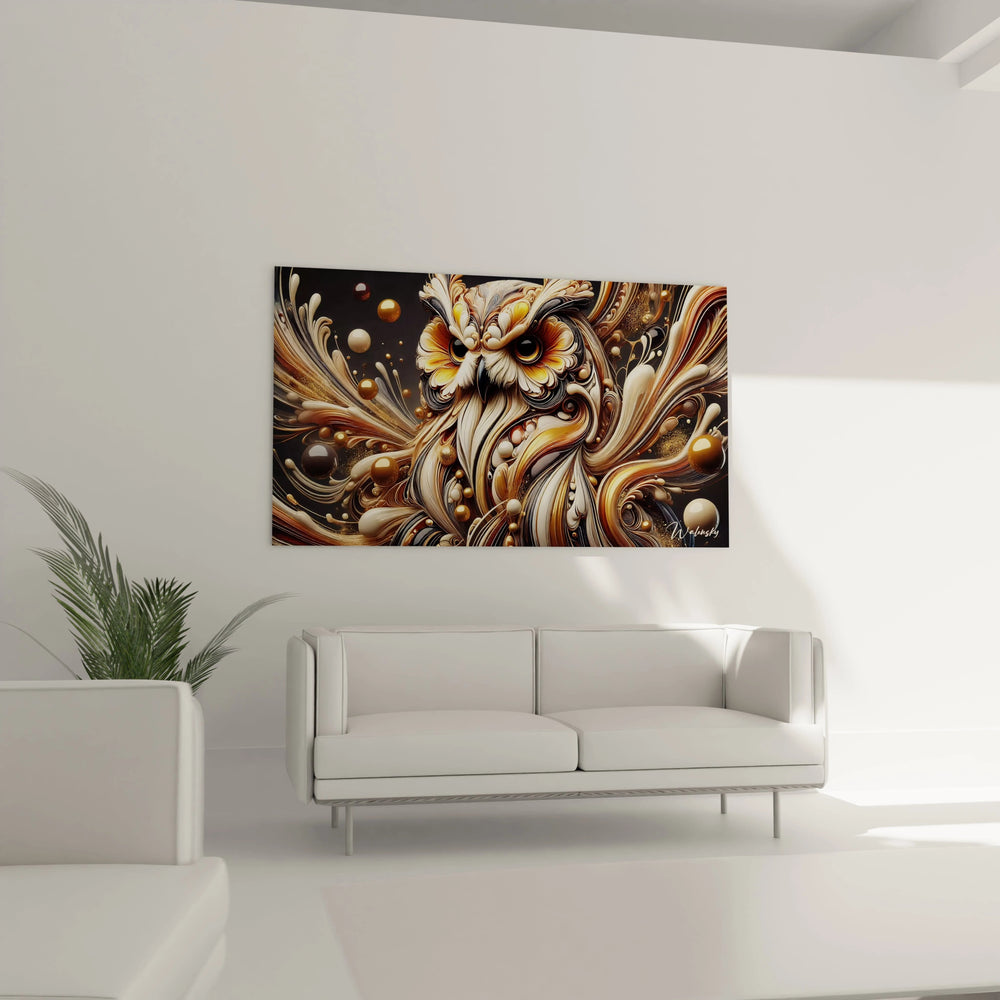 Inspiré par la silhouette majestueuse d’une chouette observée dans son habitat naturel, ce tableau diffuse une énergie primordiale, mêlant à la fois calme et intensité. L’oiseau nocturne, symbole ancestral de mystère et de savoir, devient dans cette création une présence vibrante, presque vivante, qui invite à la réflexion et à la connexion intime avec l’essence même de la nature.