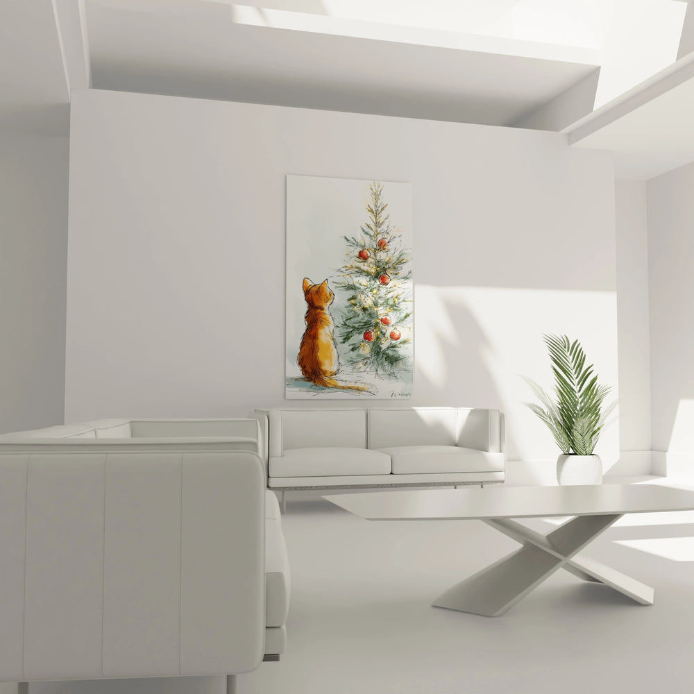 Commandez dès maintenant le Tableau Chat Admiration Silencieuse du Sapin Lumineux - Édition Noël et laissez-vous emporter par son éclat envoûtant. Chaque regard porté sur cette œuvre vous rappellera la beauté des moments simples et précieux.