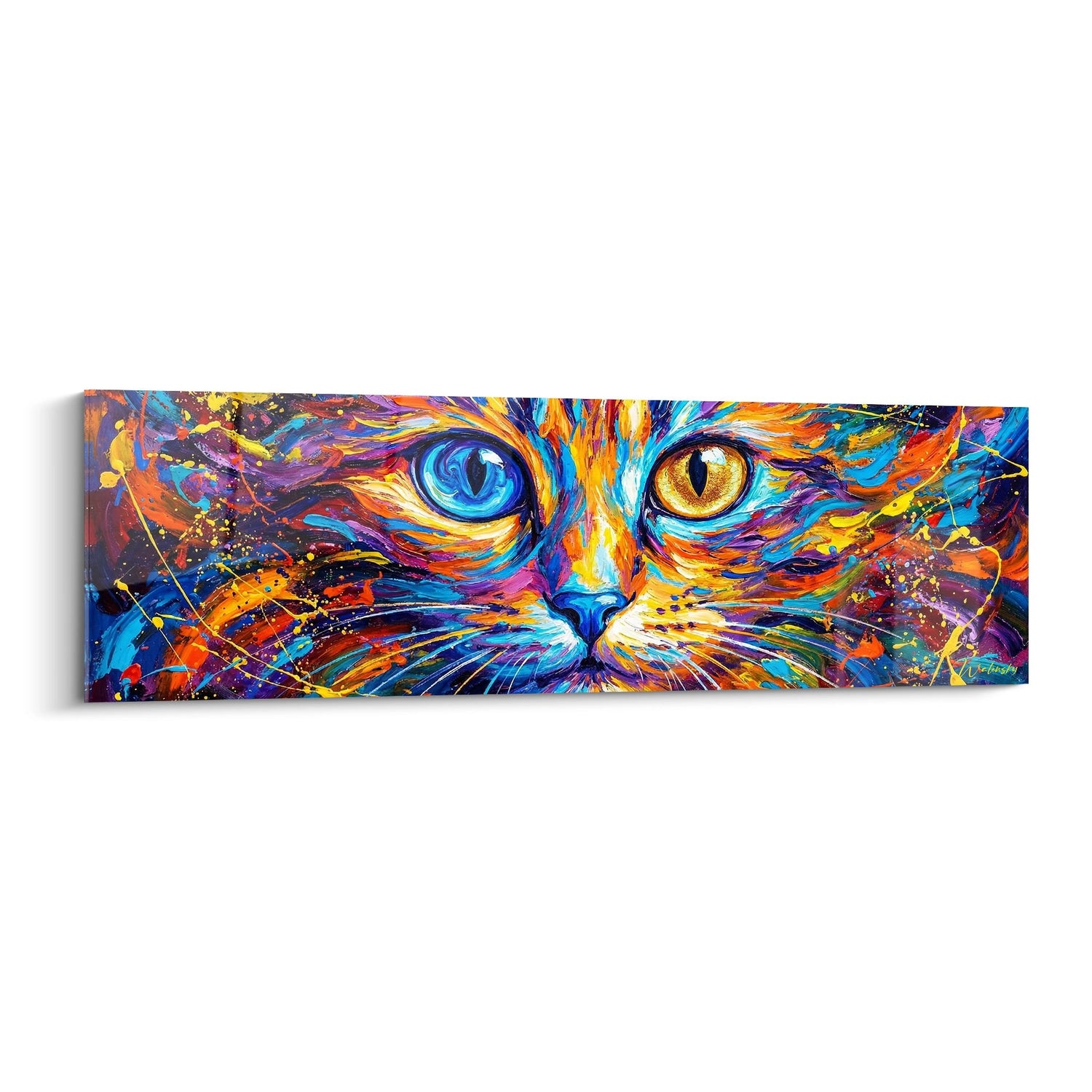 Tags: chat khao manee, yeux vairons, art moderne félin, tableau coloré, décoration murale