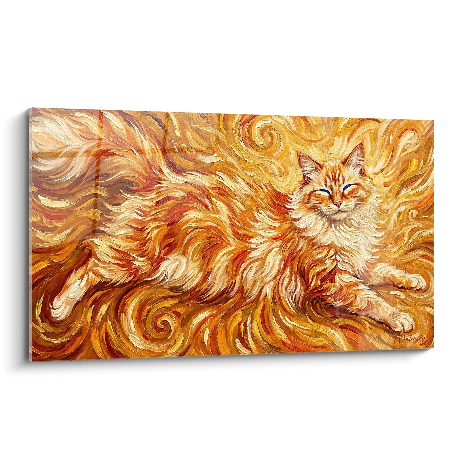 Tableau Chat Balinais Flammes Dorées - Tourbillon de Feu - Edition chat Balinais