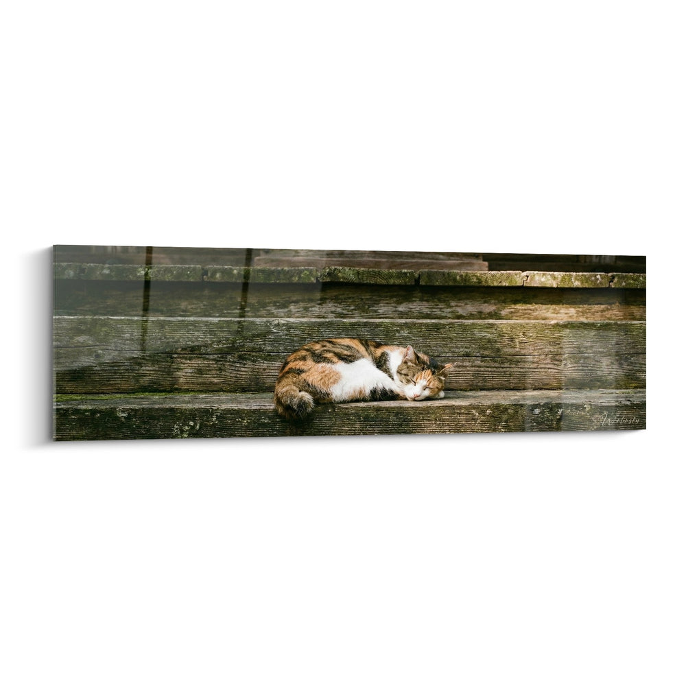 Tableau Chat endormi sur escalier en bois - Sérénité rustique - Edition chat Japanese Bobtail