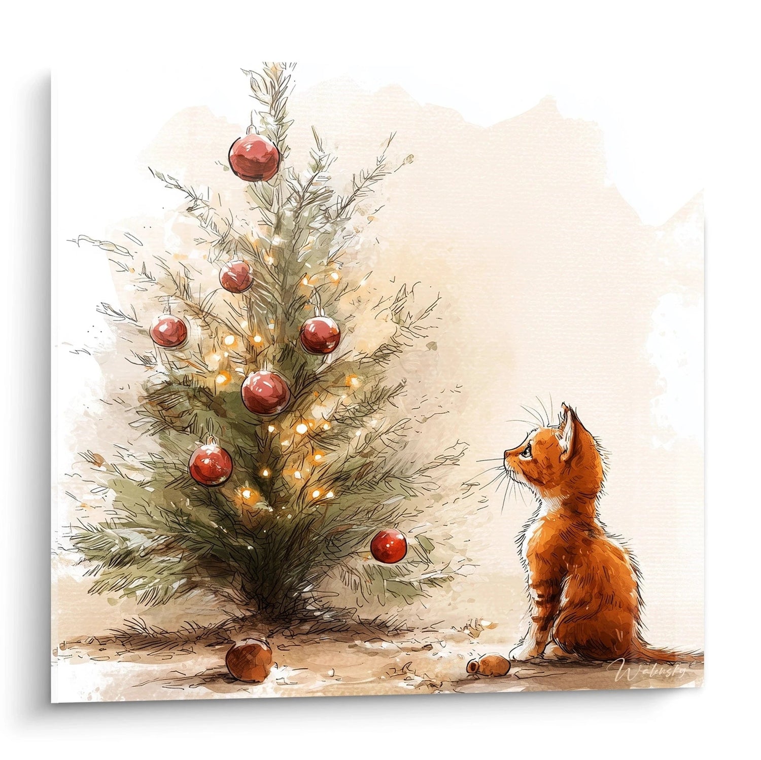 Imaginez votre salon embelli par l’image fascinante de ce chat roux, ses yeux pétillants de curiosité capturant l'éclat des boules de Noël. Chaque détail du tableau a été soigneusement pensé pour évoquer un sentiment de douceur et de réconfort pendant cette saison festive. Ce tableau ne se contente pas d’être un simple élément de décoration ; il raconte une histoire qui résonne dans le cœur de tous ceux qui le contemplent.