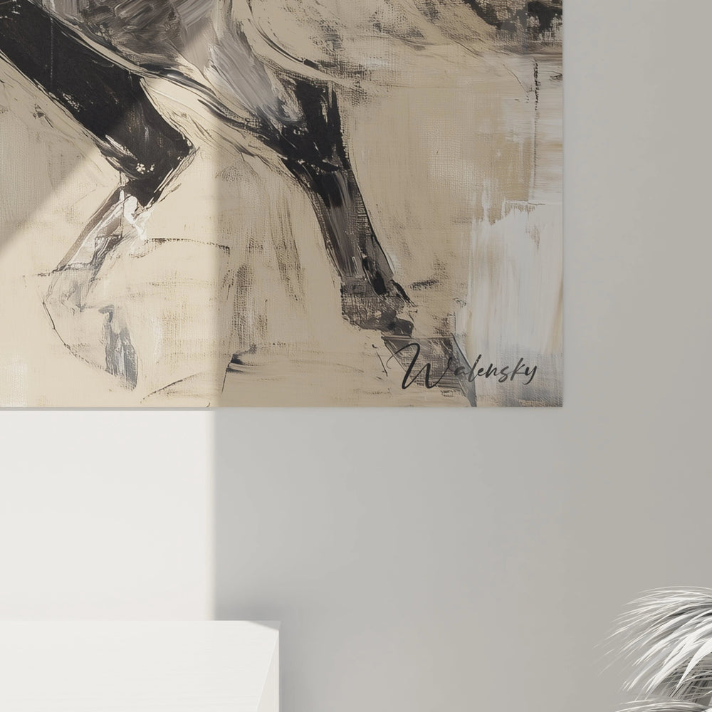 Cette harmonie chromatique fait de ce tableau cheval tons neutres une pièce polyvalente qui s'intègre naturellement dans différents environnements décoratifs contemporains.