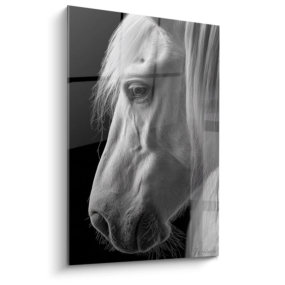 Tableau Cheval Blanc Portrait - Grâce Équestre - Edition animaux noir et blanc