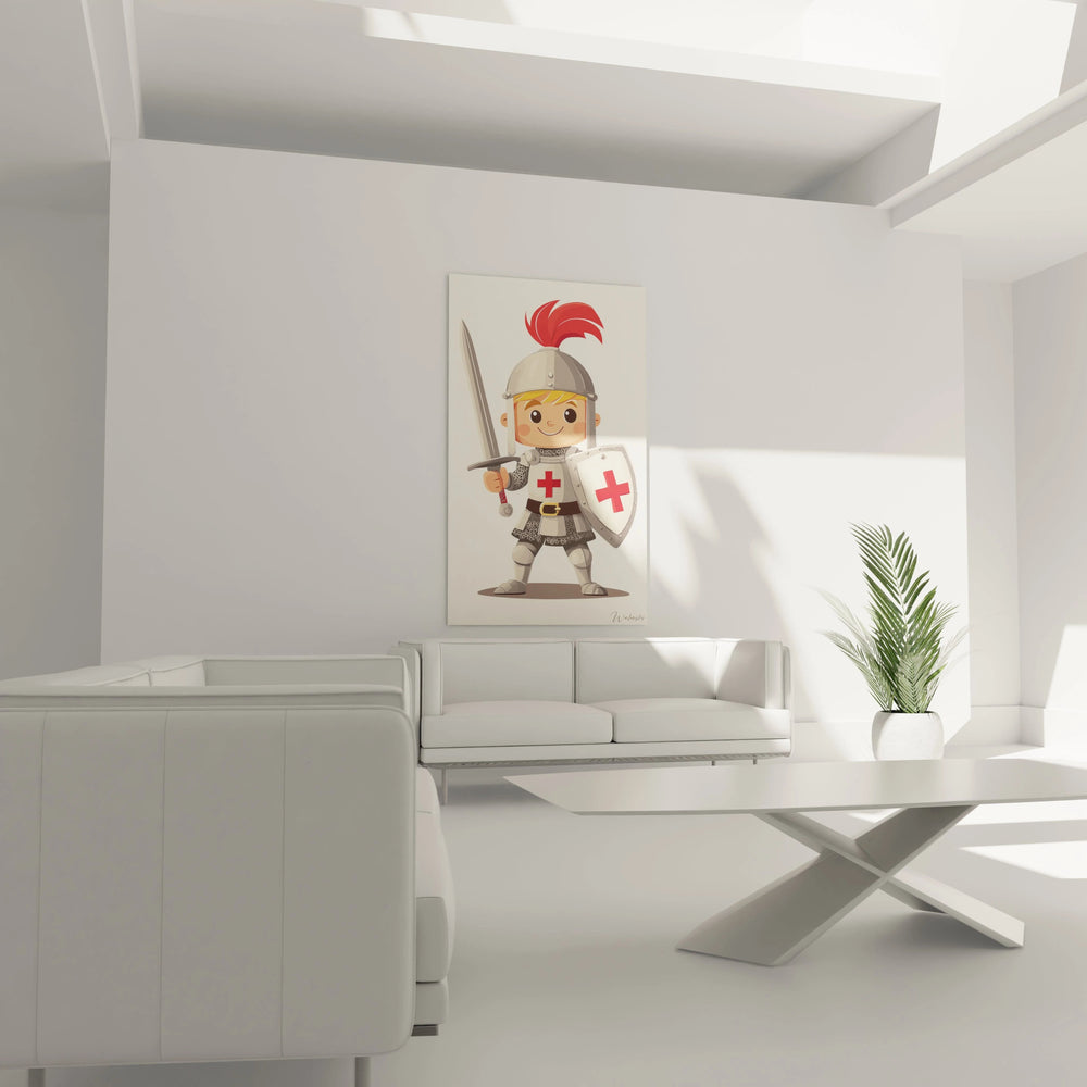 Ce tableau dessine avec douceur et couleurs un jeune chevalier prêt à défendre son royaume, vêtu d’une armure scintillante et sublimé par un panache rouge flamboyant. Chaque détail, du bouclier à la plume de son casque, évoque un monde médiéval à la fois accessible et fascinant, où la bravoure rime avec bienveillance. En posant son regard sur cette création, votre enfant se sent inspiré, encouragé à développer confiance et imagination au quotidien.
