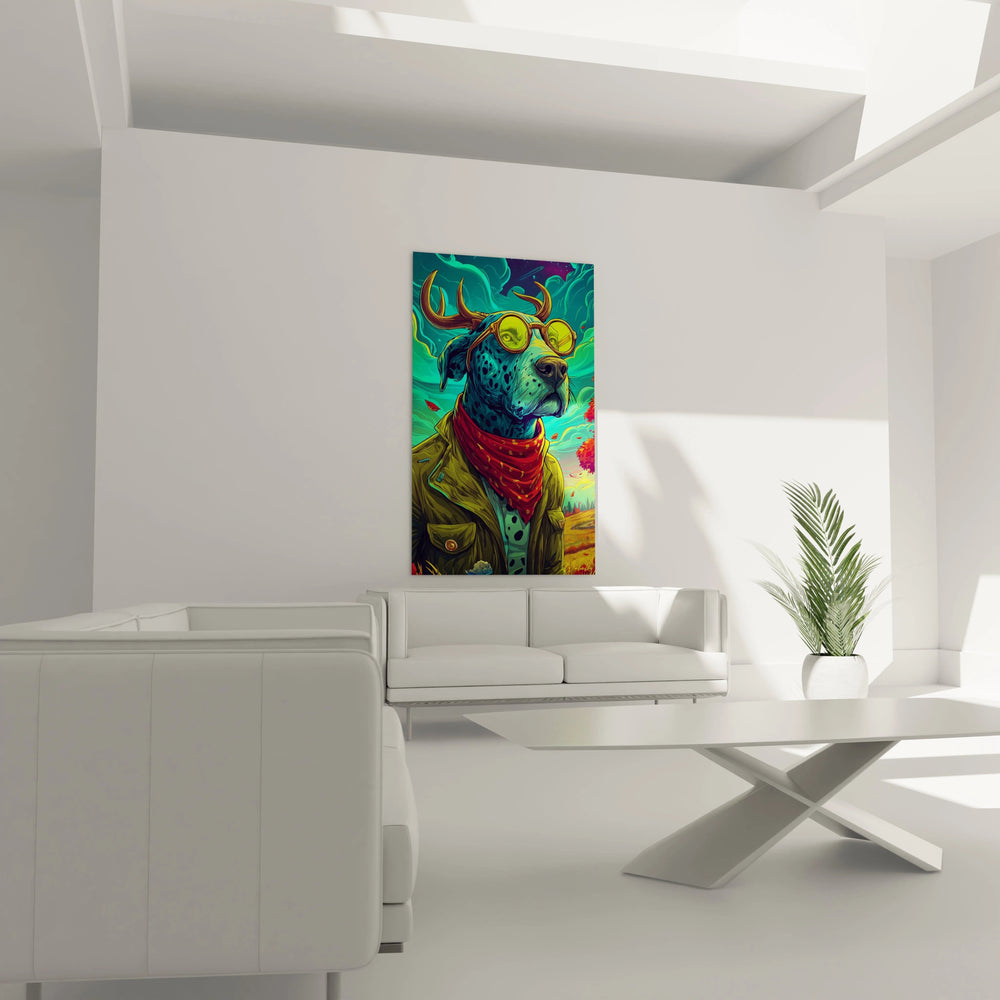 Tags : tableau chien fantastique, art mural bande dessinée, décoration moderne, chien humanisé, illustration fantastique