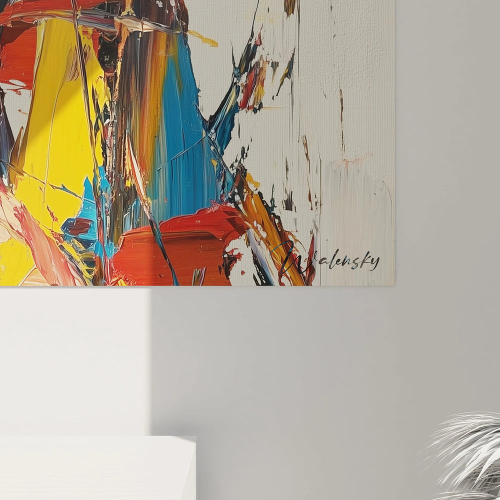 Conçu pour sublimer les intérieurs raffinés et modernes, ce tableau s’intègre avec grâce à des meubles aux lignes épurées, en bois clair ou métal. C’est également la pièce maîtresse idéale pour ceux qui souhaitent cultiver une atmosphère à la fois intense et apaisante, grâce à un mélange sophistiqué de formes abstraites et de couleurs vibrantes.