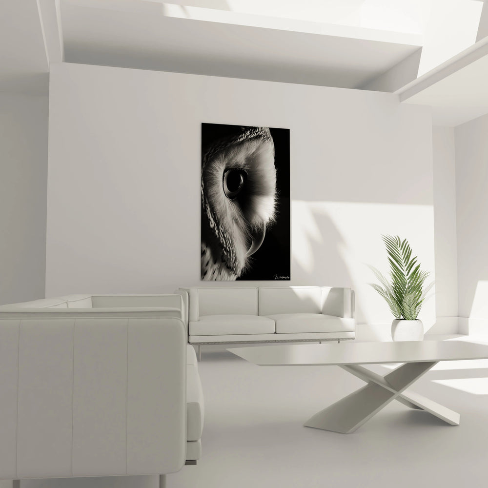 L'éclairage recommandé privilégie une lumière indirecte qui évite les reflets tout en valorisant les nuances subtiles. Ce tableau chouette design se marie harmonieusement avec des tons neutres, du mobilier en bois naturel ou des accents métalliques. L'absence de couleur vive permet une intégration facile dans tout environnement décoratif existant.